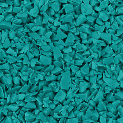 EPDM-крошка бирюзового цвета — яркий, современный материал покрытия, подходящий для устройства спортивных и детских игровых площадок и залов, общественных зон, промышленных пространств любой площади, внутри помещений и на улице. Также EPDM-крошка может использоваться при создании игровых объектов и малых архитектурных форм.