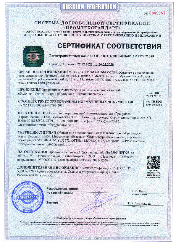 Производство SBR-крошки осуществляется на высокотехнологичной автоматизированной линии. Сначала шины проходят визуальную проверку, затем их измельчают и очищают от металлических и текстильных волокон, пыли и грязи на трех этапах с использованием сепараторов и пылеуловителей. На финальной стадии крошка окрашивается премиальным стойким пигментом и обрабатывается полиуретаном для повышения цветовой устойчивости.